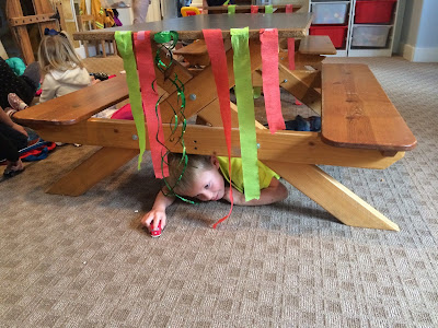 To finish our day we had a great time in our car wash tunnel. My MGT teacher guide suggested building a car wash to encourage gross motor development. My class loves these kinds of activities. They really reinforce learned concepts because children learn best when they are having fun.
